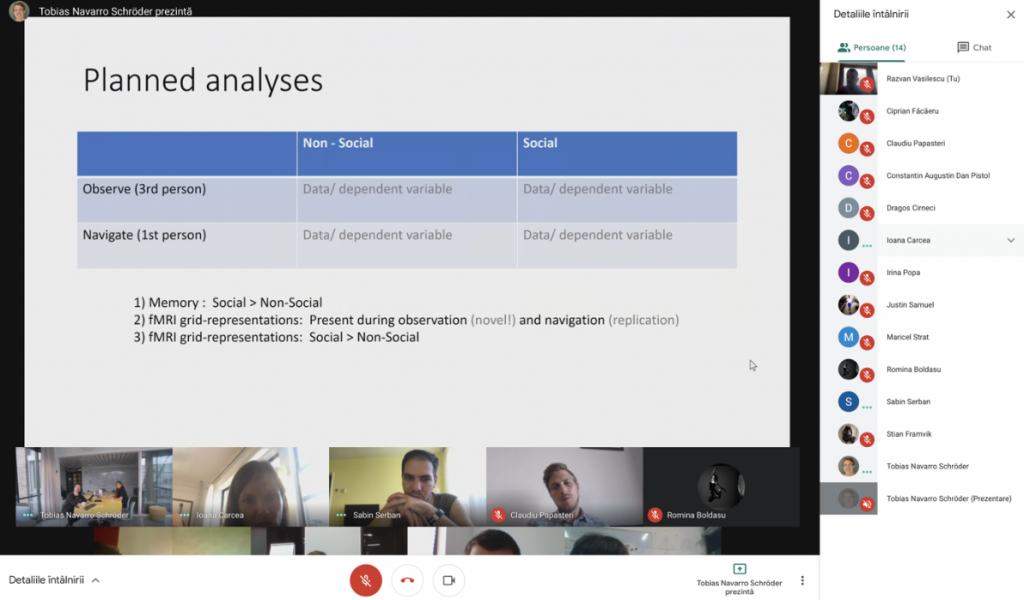Directorul proiectului si liderul prtenerului norvegian, d-na dr. Ioana Carcea, respectiv dl. Dr. Christian Doeller, au coordonat intalnirea. S-a prezentat stadiul actual al proiectului, s-au inventariat masurile de gestionare a proiectului in contextul pandemic si s-=au stabilit pasii de urmat. Concluzia a fost ca desi exista intarzieri cauzate de contextul pandemic, acestea pot si vor fi recuperate pana la finalul proiectului.